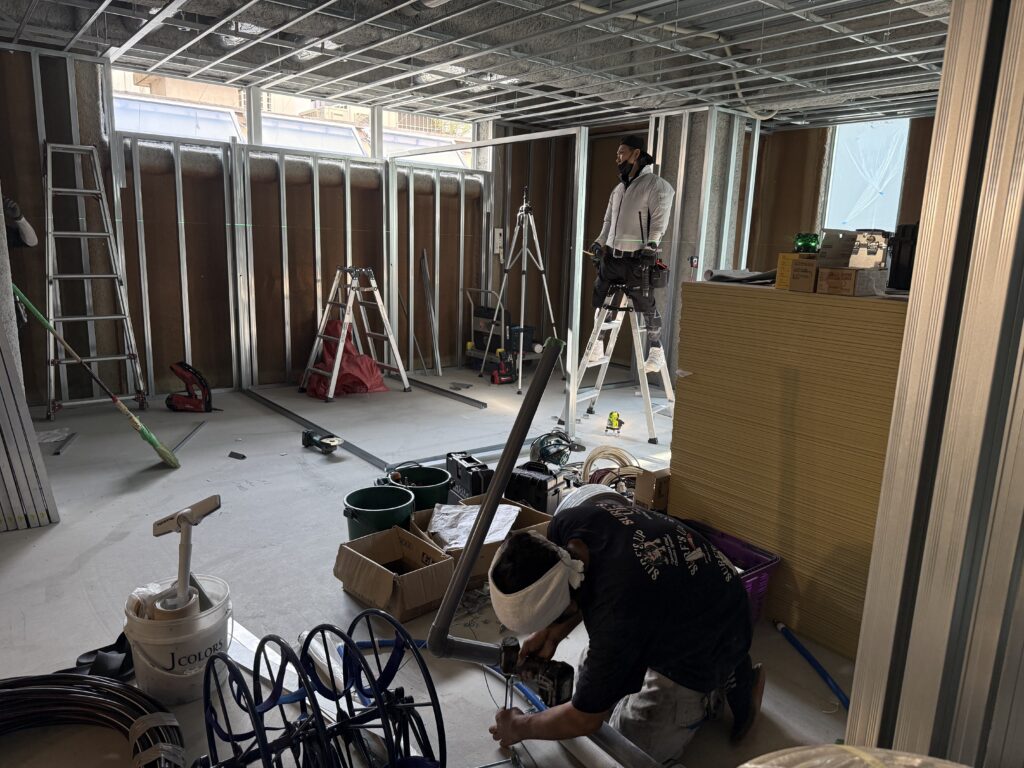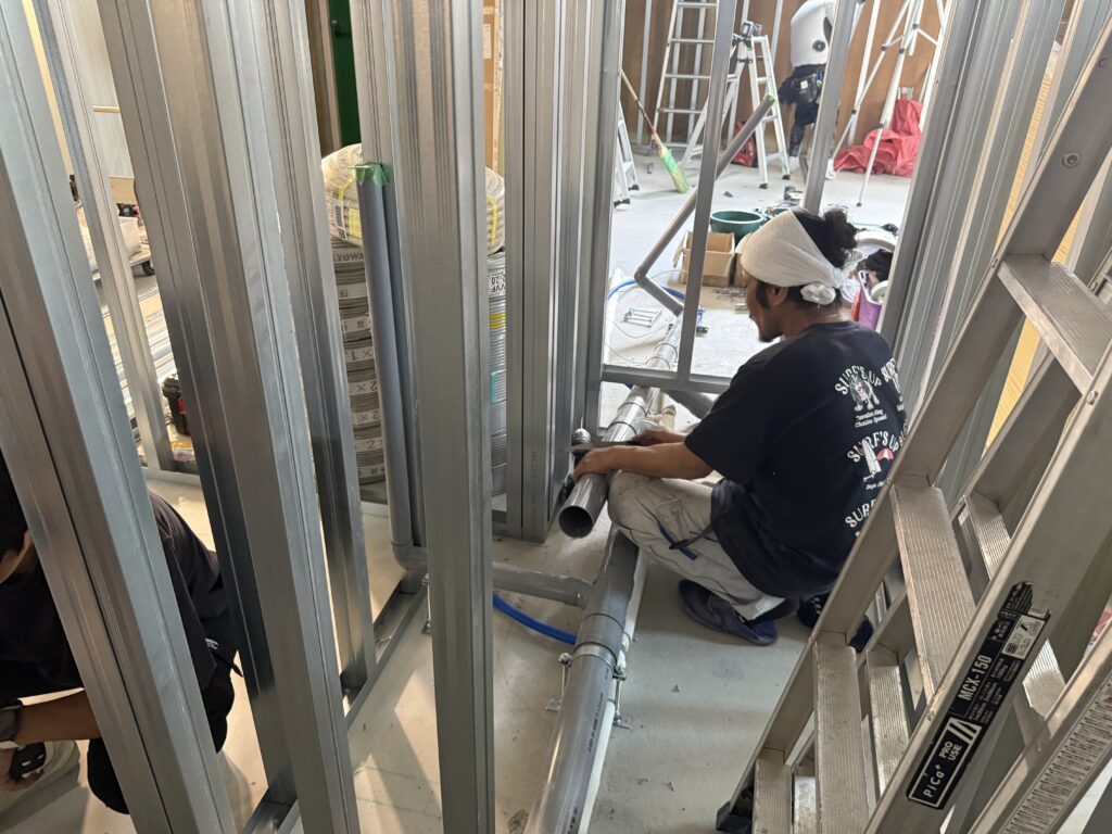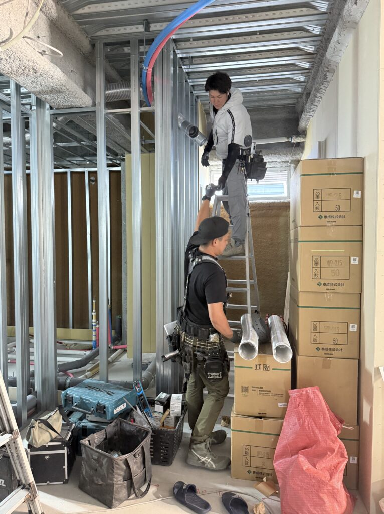 この日は、大工さん、設備屋さん、軽天屋さん、電気工事が入っていました。
